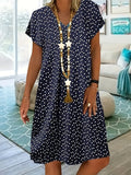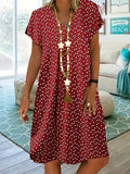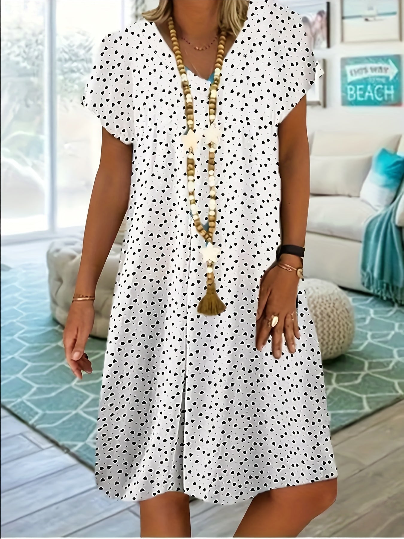 Polka Dot & Heart Print Dress, Casual V Neck Short Sleeve Dress