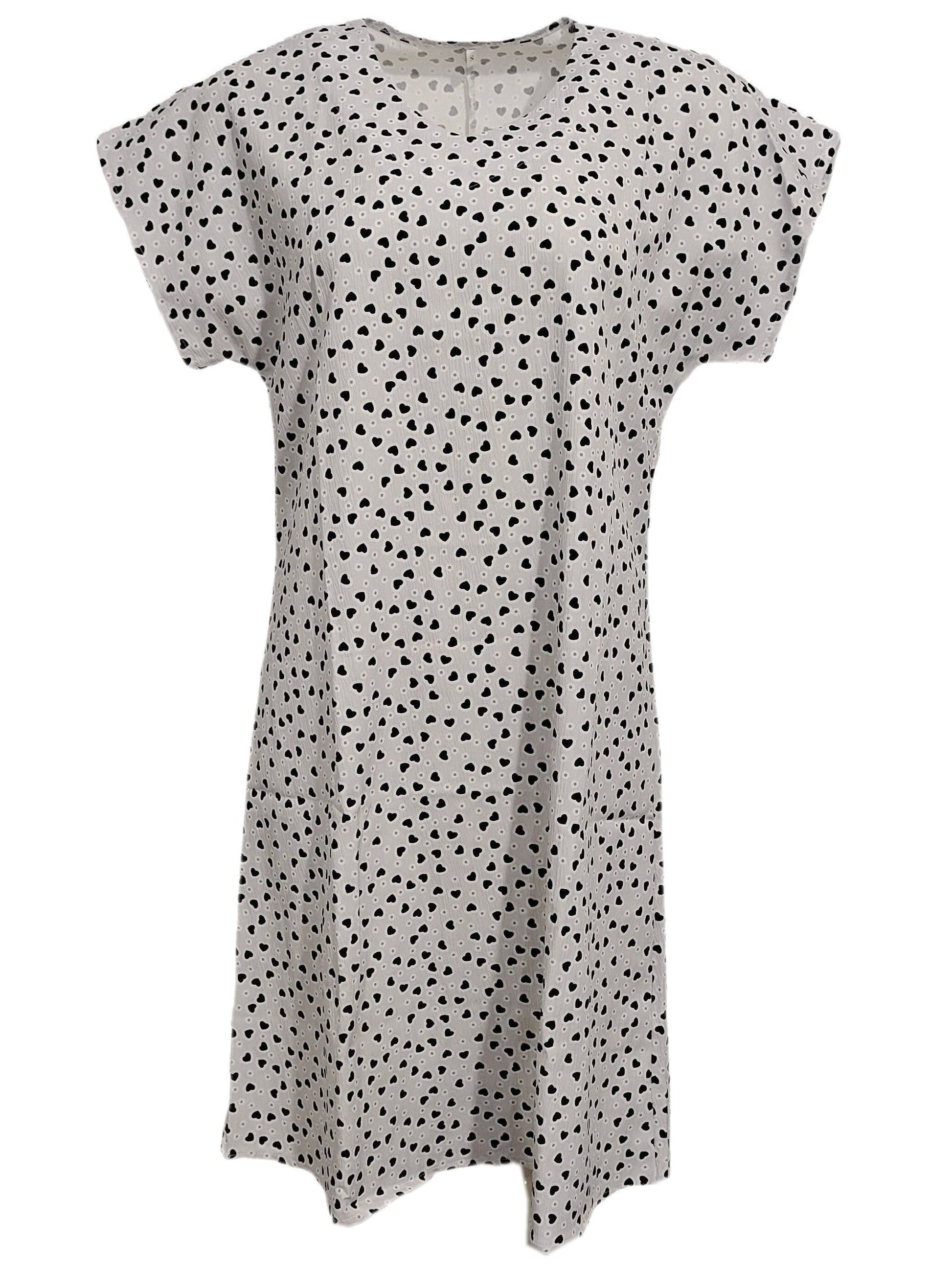 Sale Polka Dot & Heart Print Dress, Casual V Neck Short Sleeve Dress