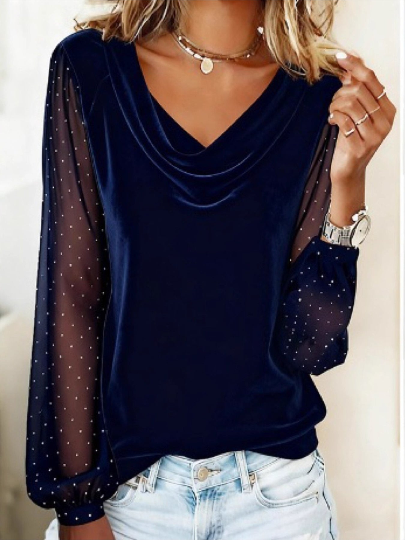 Cowl Neck Long Sleeve Plain Regular Regular Fit Shirt