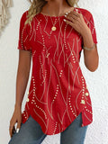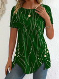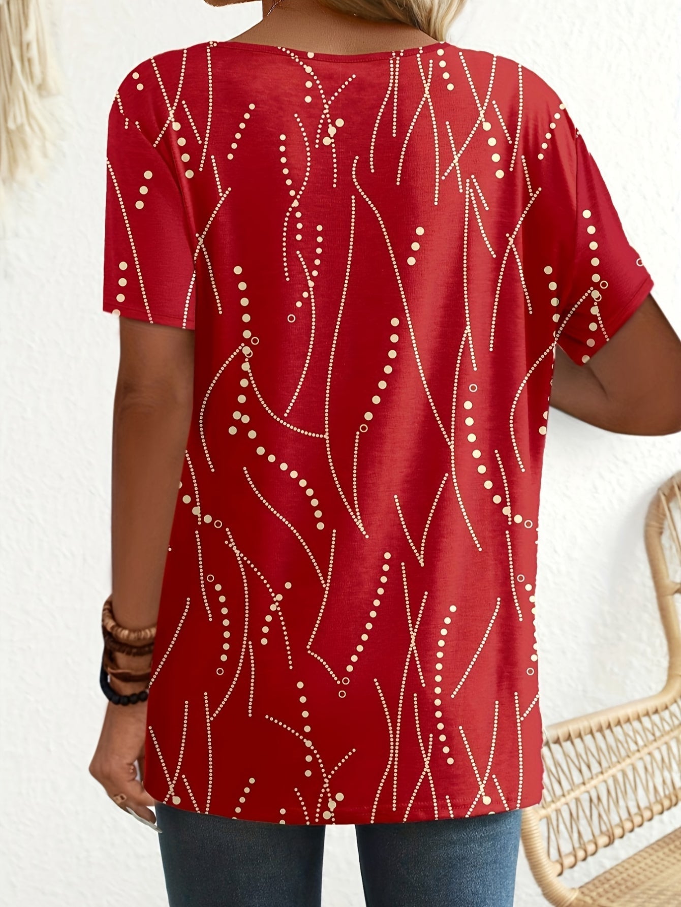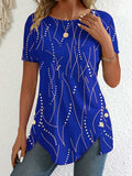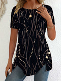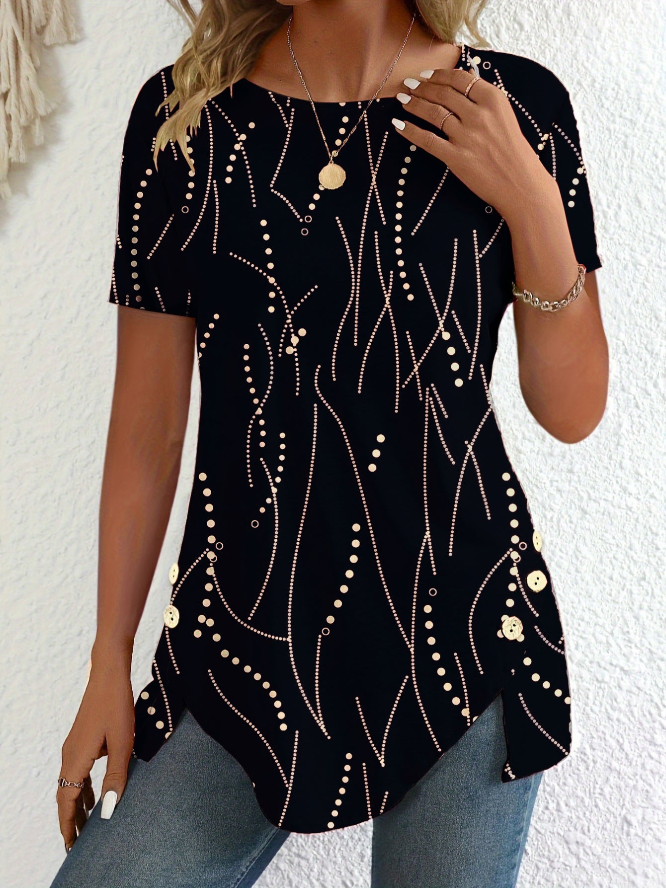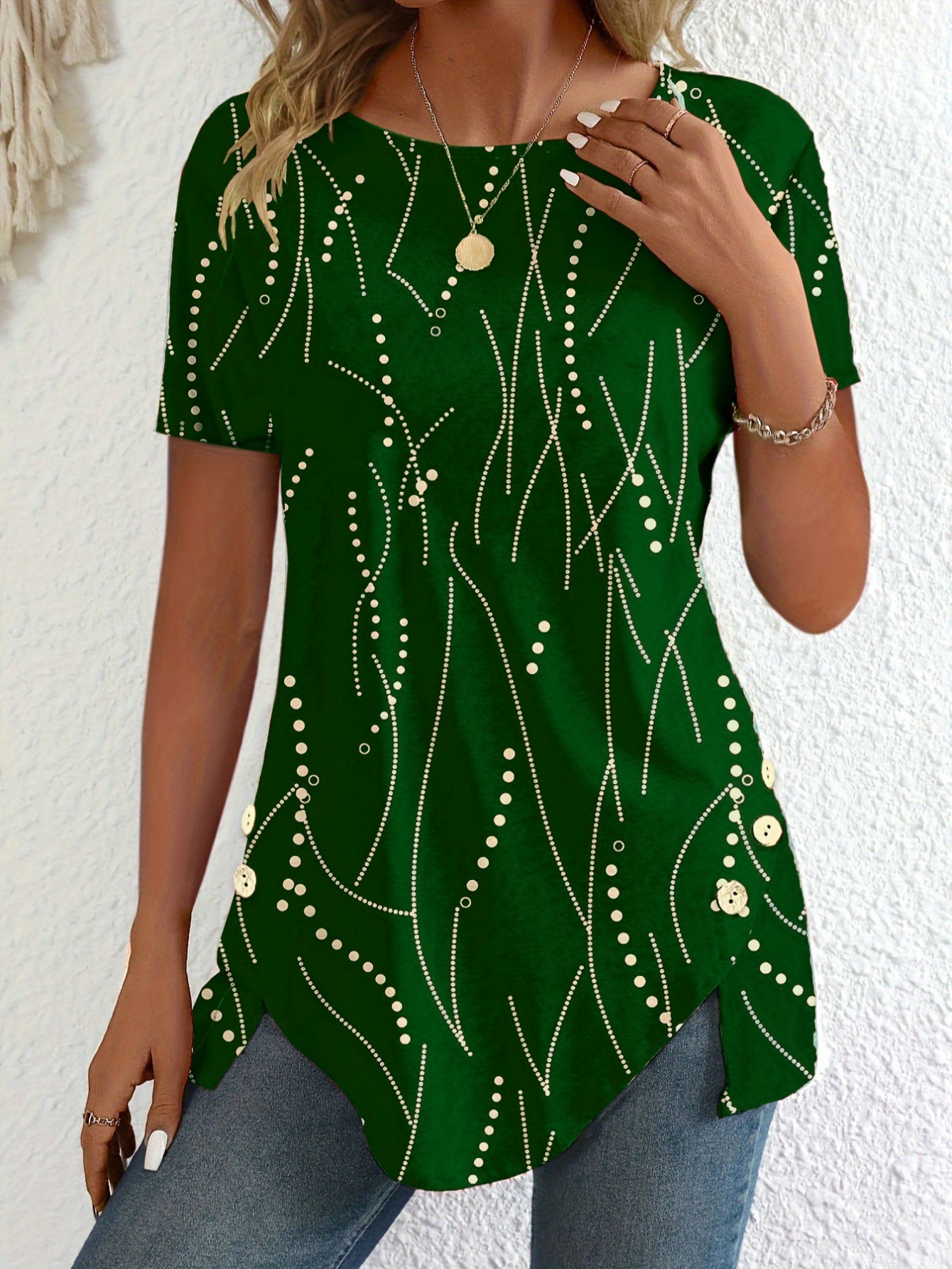 Polka Dots Print Crew Neck T-Shirt, Casual Button Decor Short Sleeve T-Shirt