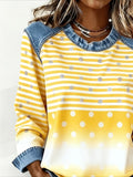 Denim Print Splicing Long Sleeve Crew Neck Sweatshirts
