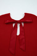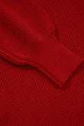 Racing Red Lantern Sleeve V Neck Knot Back Sweater