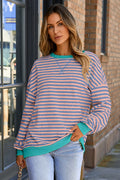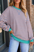- It’s a worthy to have classic sweatshirt for fall winter.The striped pattern gives a timeless silhouette.Contrast ribbed trim is elastic and cling fit to the body.The relaxed fit style and drop shoulder design give laid-back vibe.