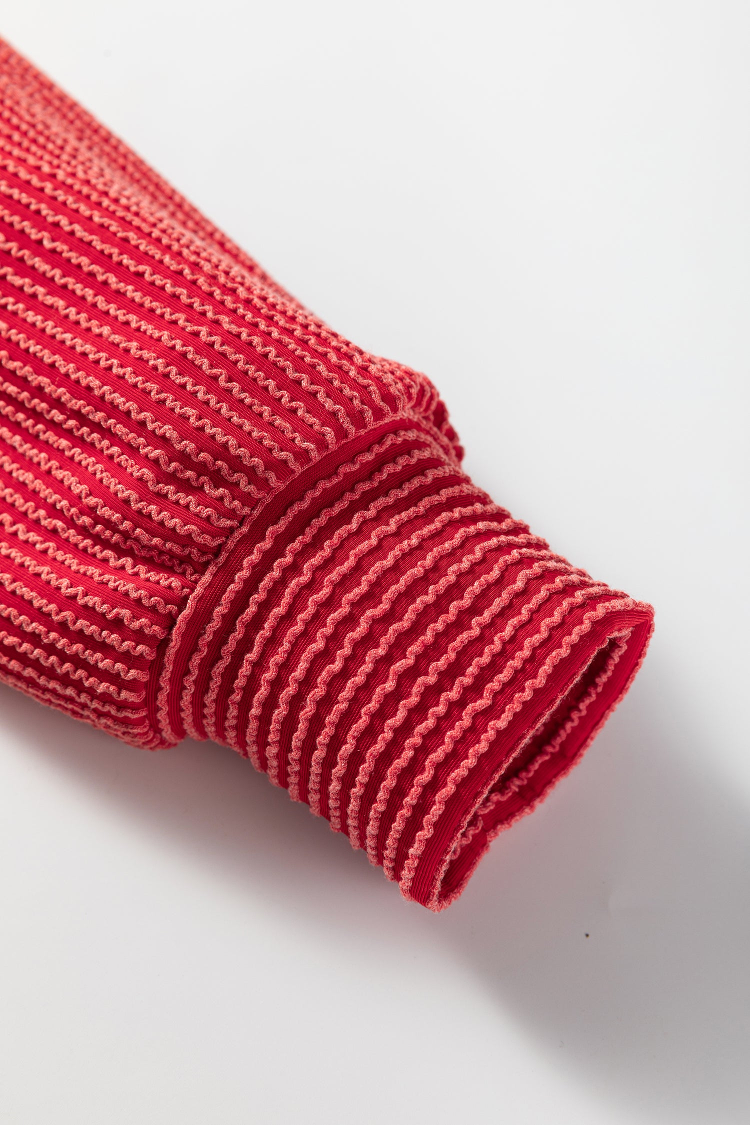 Racing Red Twisted Rib Outlined Merry Letter Graphic Loose Long Sleeve Top