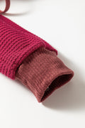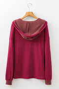Racing Red Waffle Patchwork Drop Shoulder Hooded Long Sleeve Top