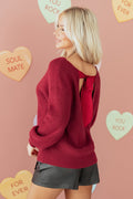 Red Dahlia Ribbed Knit Ribbon Knot Backless Drop Shoulder Sweater
