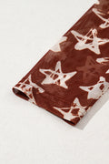 Sale Red Mesh Star Print Mock Neck Sheath Long Sleeve Top
