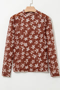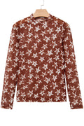 Sale Orchid Petal Floral Print Mesh Fitted Long Sleeve Top