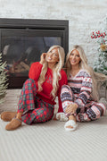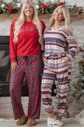 Red Plaid Mama Graphic Christmas Holiday Crewneck Pullover and Pants Two Piece Lounge Set