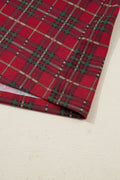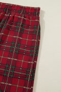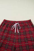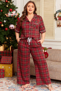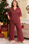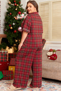 Red Plus Size Plaid Short Sleeve Shirt Loose Pants 2pcs Pajama Set