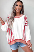 Sale Red Stripe Colorblock Patchwork Contrast Stitching Oversize Sweatshirt