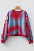 Red Stripe Exposed Seam Contrast Ribbed Trim Oversize Sweatshirt