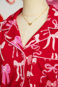 Red Sweet Bow Print Ruffled Short Sleeve Shirt Shorts 2pcs Pajama Set