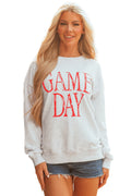 - GAME DAY graphic shows team spirit with retro flair.Baggy fit keeps you comfy while cheering on game day.The crew neck pullover design makes this sweatshirt classic.It pairs well with any fashionable jeans for a casual look.