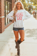 Sale Red Vintage Washed GAME DAY Graphic Baggy Sweatshirt