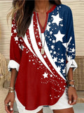 Casual Independence Day (Flag) V Neck Long Sleeve T-shirt