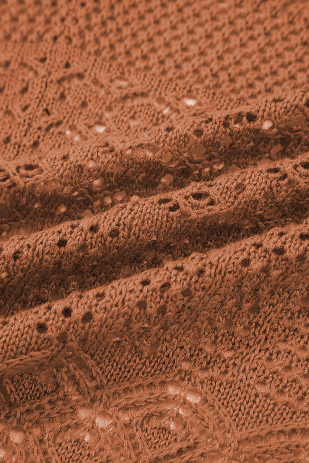 Redwood Burl Mix Pattern Hollowed Knit Open Front Cardigan