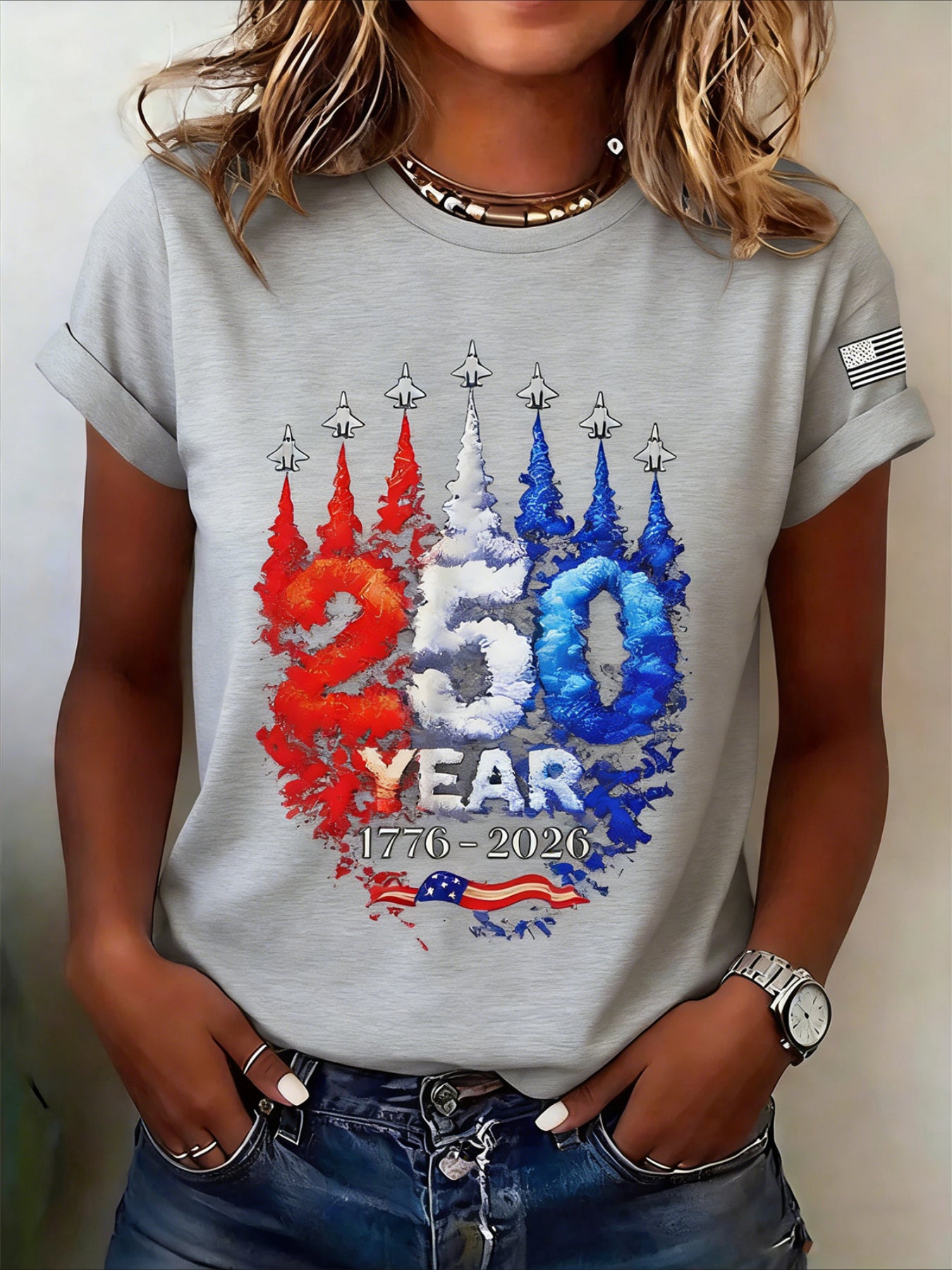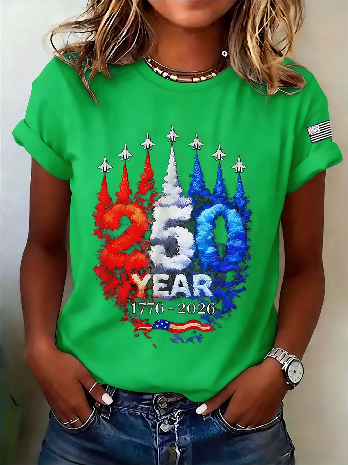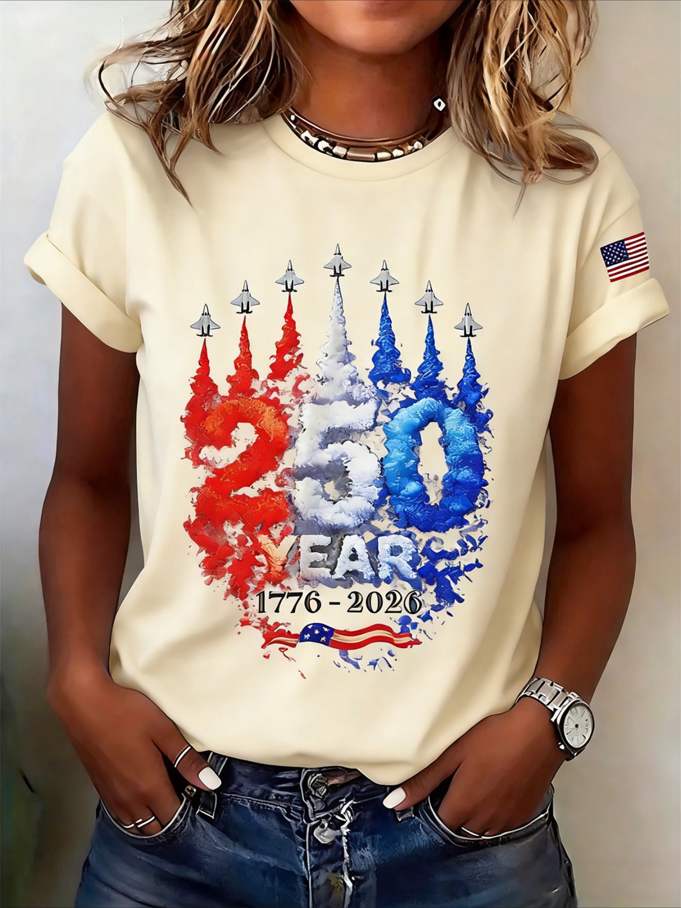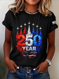 250th Anniversary Of The Founding Of the United States Short Sleeve Text Letters Printing Jersey Crew Neck T-shirt