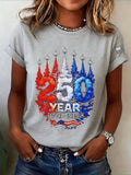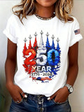 Casual Vintage America 250 Years Printing Crew Neck Short Sleeve T-shirt