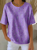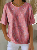Cotton And Linen Round Neck Short Sleeve Button H-Line Daily Going Out Casual Loose Blouse