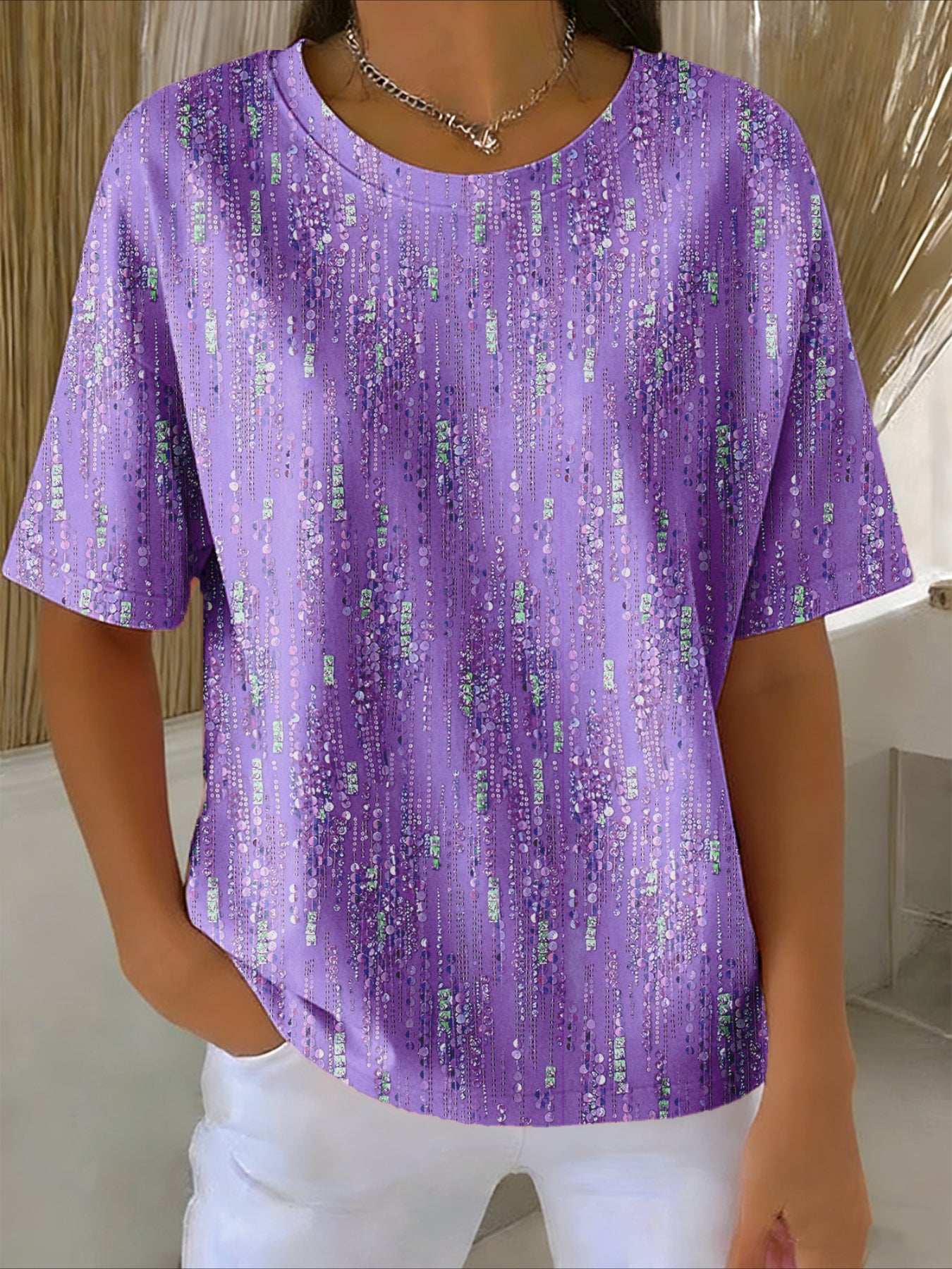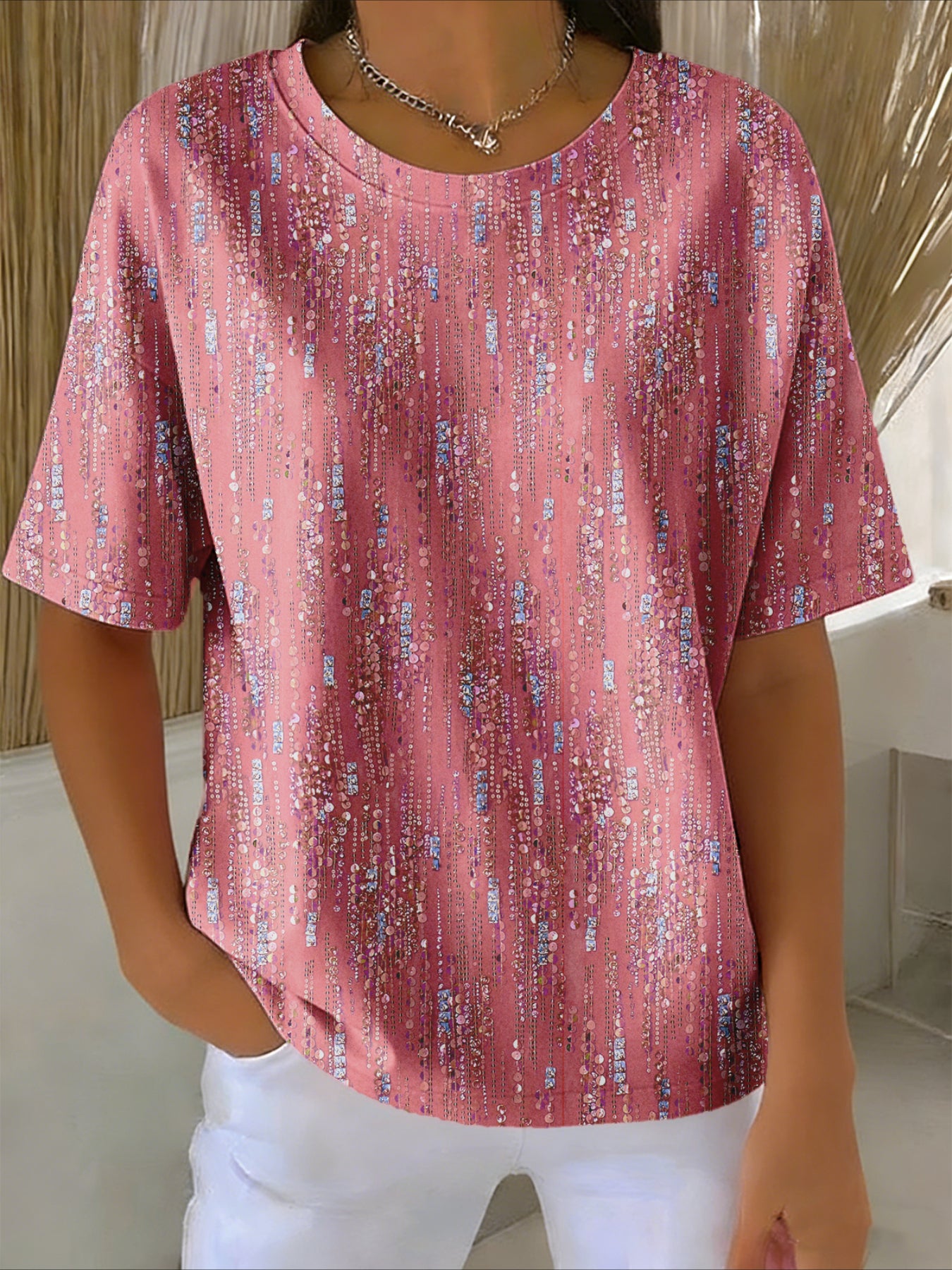 Regular Short Sleeve Round Neck Fit Casual Abstract T-Shirt