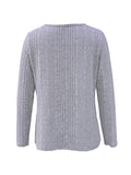 Sale Striped Botton Crew Neck T-Shirt, Elegant Long Sleeve T-Shirt