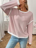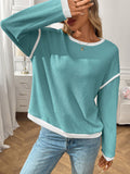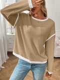 Sale Color Block Crew Neck T-shirt, Casual Long Sleeve Top