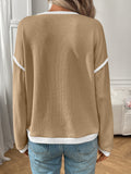 Sale Casual Contrast Lace Round Neck Long Sleeve T-Shirt