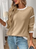Sale Solid Simple Knit Sweater, Casual Crew Neck 3/4 Sleeve Sweater