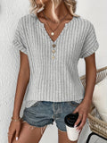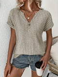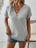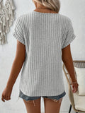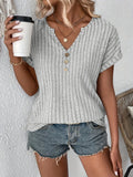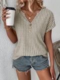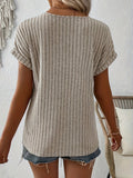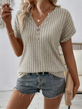 Ribbed Knit Notch Neck T-Shirt, Casual Short Sleeve T-Shirt