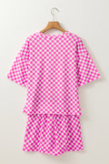 Sale Rose Checkered Top and Short Casual 2pcs Set
