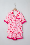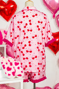 Rose Cherry Bow Mixed Print Scalloped Edge Short Pajama Set