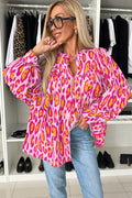 Sale Rose Red Oversized Leopard Print Balloon Sleeve Casual Shirt