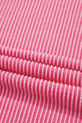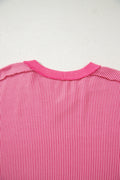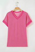 Rose Red Twisted Ribbed Knit V Neck Casual Tee