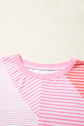 Sachet Pink Striped Colorblock Exposed Seam Casual Long Sleeve Top