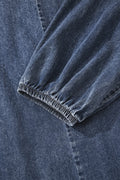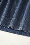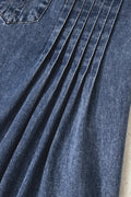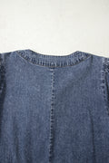 Sail Blue 3/4 Sleeve Tied V Neck Pleated Denim Mini Dress