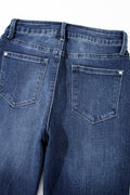 Dusk Blue 2 Button High Waist Piping Trim Bootcut Jeans
