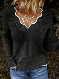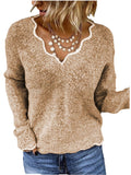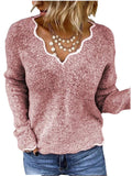 Sale Casual Contrast Lace Round Neck Long Sleeve T-Shirt