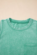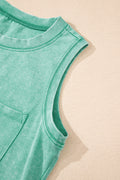 Sea Green Mineral Wash Patched Chest Pocket Casual Tank Top