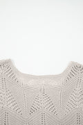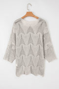 Seagrass Hollow Out Knit 7/8 Sleeve Casual Sweater