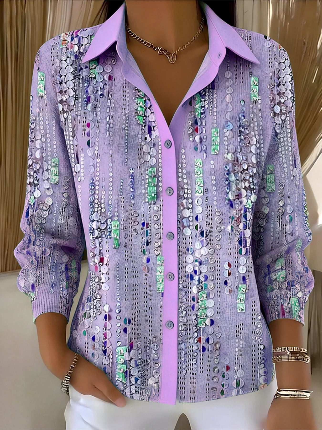 Shirt Collar Long Sleeve Gradient Pattern Regular Loose Shirt