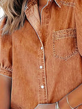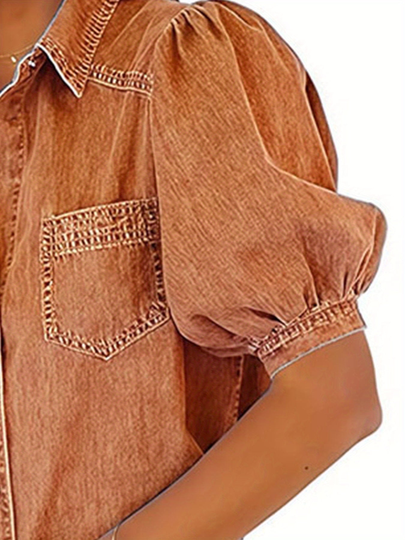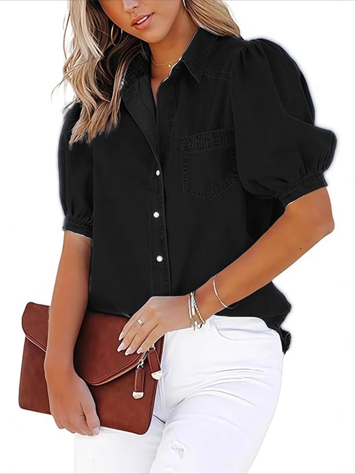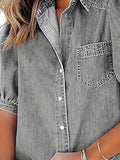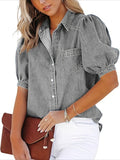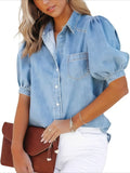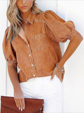 Sale Women's Button Print Long Sleeve Casual Basic Shirt Collar Shirt Blouse