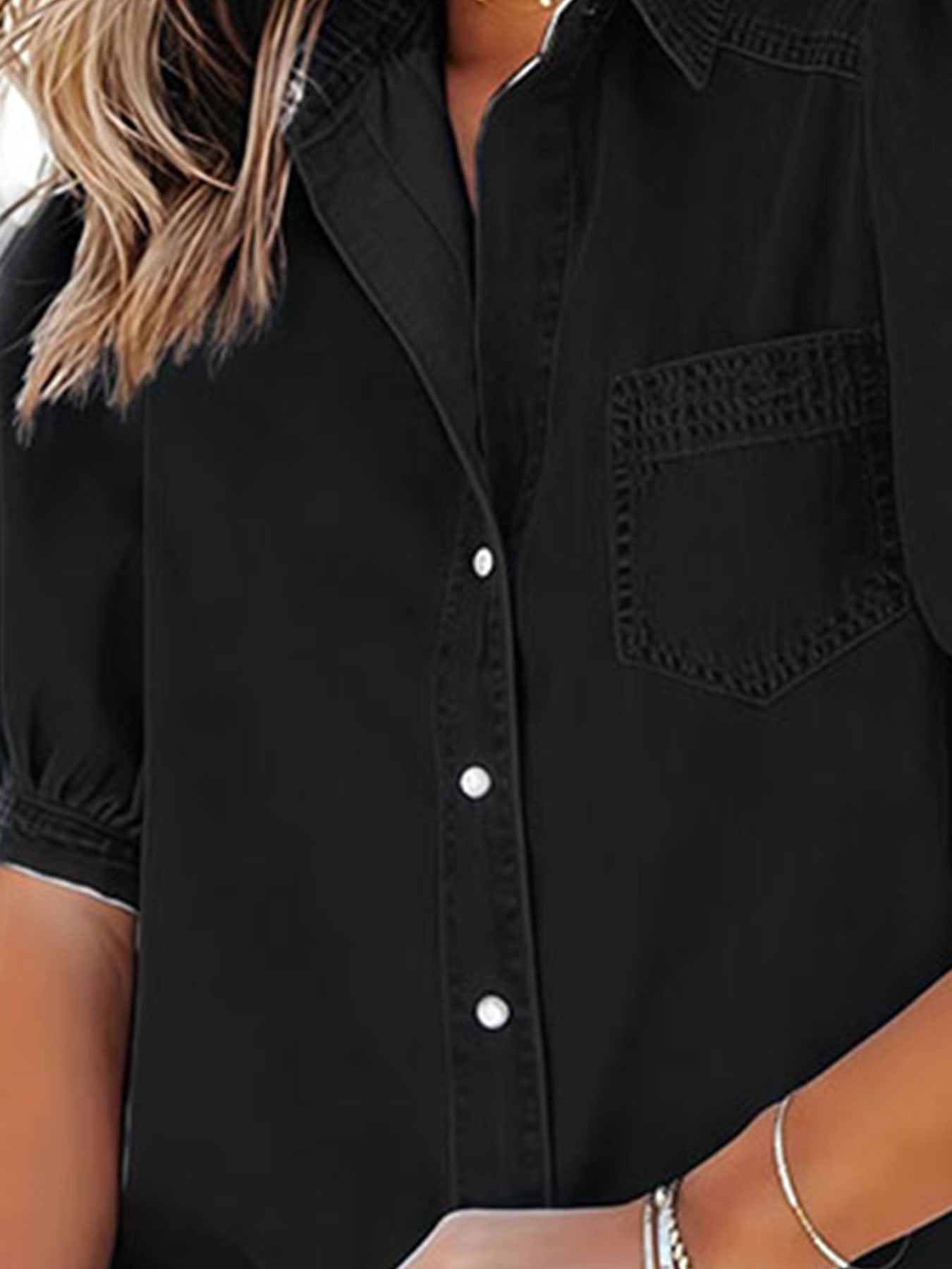 V Neck Long Sleeve Plain Regular Micro-Elasticity Shirt