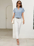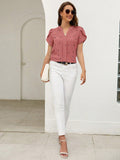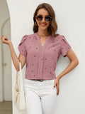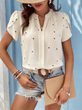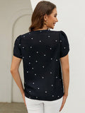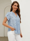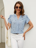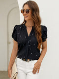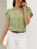 Short Sleeve Shirt With Heart Print And Petal Hem