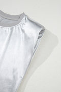 Silvery Metallic Luster Crew Neck Shift Tank Top