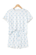 - Stylish bow knot and geometric pattern add a trendy chic aesthetic.It includes the crew neck tee and drawstring shorts.Lettuce trim on both pieces adds a fun and playful flair.Two-piece set is versatile for sleeping or lounging.