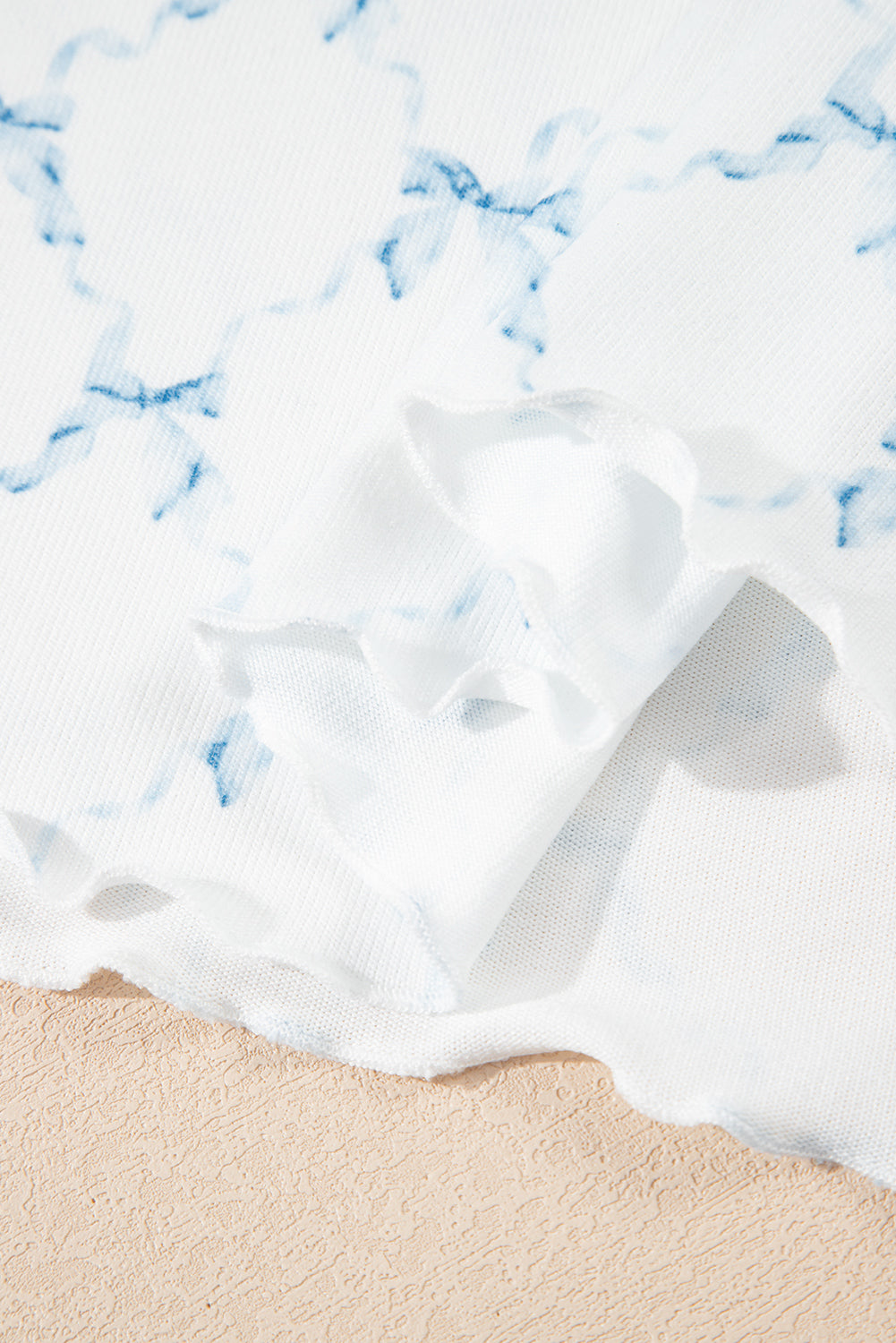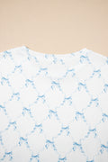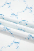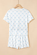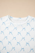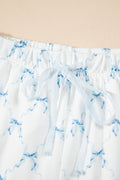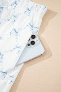 Sale Sky Blue Bow Knot Geometric Print Lettuce Trim Two Piece Lounge Set