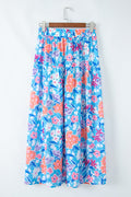 Sky Blue Floral Printed High Waist Split Wrap Long Skirt