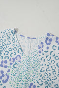 Sky Blue Mixed Leopard Print V Neck Short Sleeve Blouse