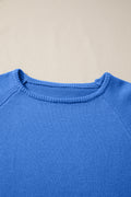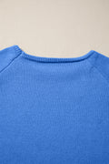 Sky Blue Solid Color Knit Loose Bracelet Sleeve Dolman Sweater